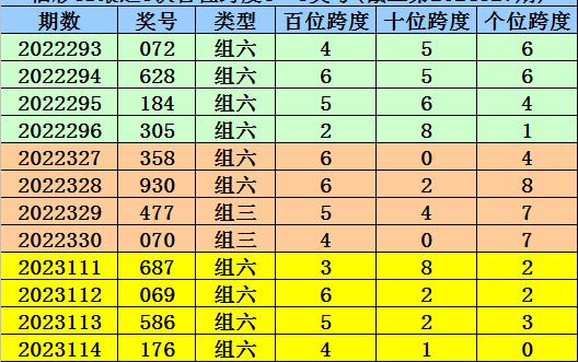 第2023111-第2023113期奖号:687、069、586,其下期奖号为:176,首位号码跨度为4;