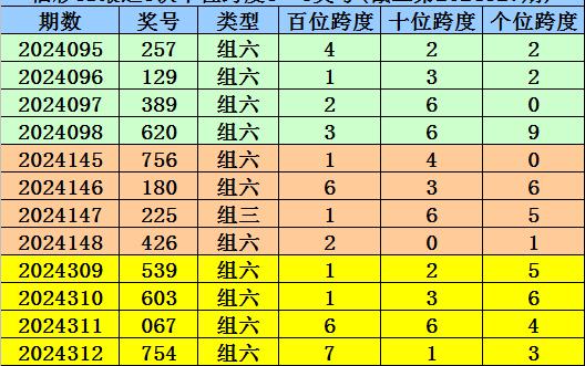 第2024309-第2024311期奖号:539、603、067,其下期奖号为:754,中位号码跨度为7;