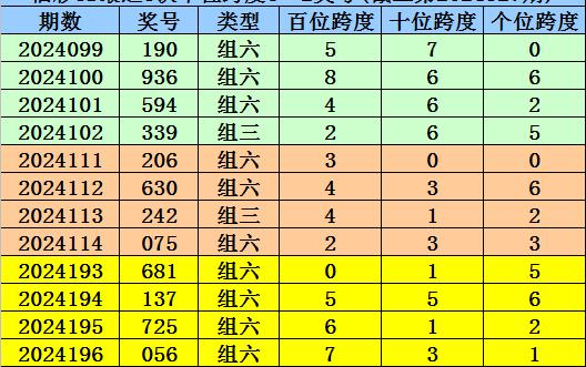 第2024193-第2024195期奖号:681、137、725,其下期奖号为:056,末位号码跨度为7;