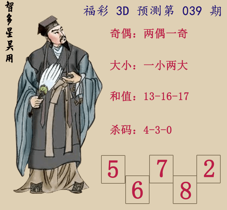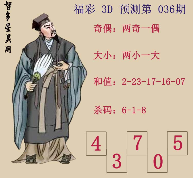 25037期:福彩3D【智多星吴用】预测图推荐 开131 胆码中、杀码中