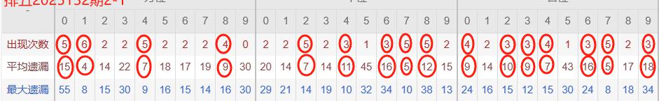 下图所圈出的为近30期各位置所出现的热码出现次数及平均遗漏值,用以参考和一些冷码组合选号。