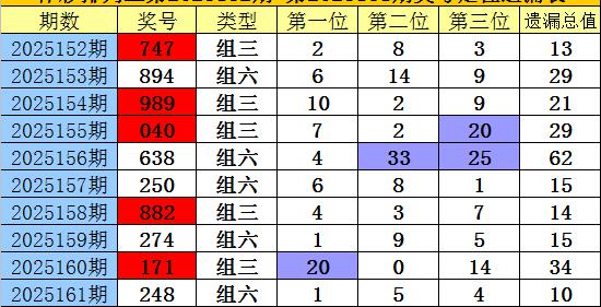开奖回顾:排列三第2025161期奖号为:248,各位号码遗漏值分别为1、5、4,遗漏总值为10。