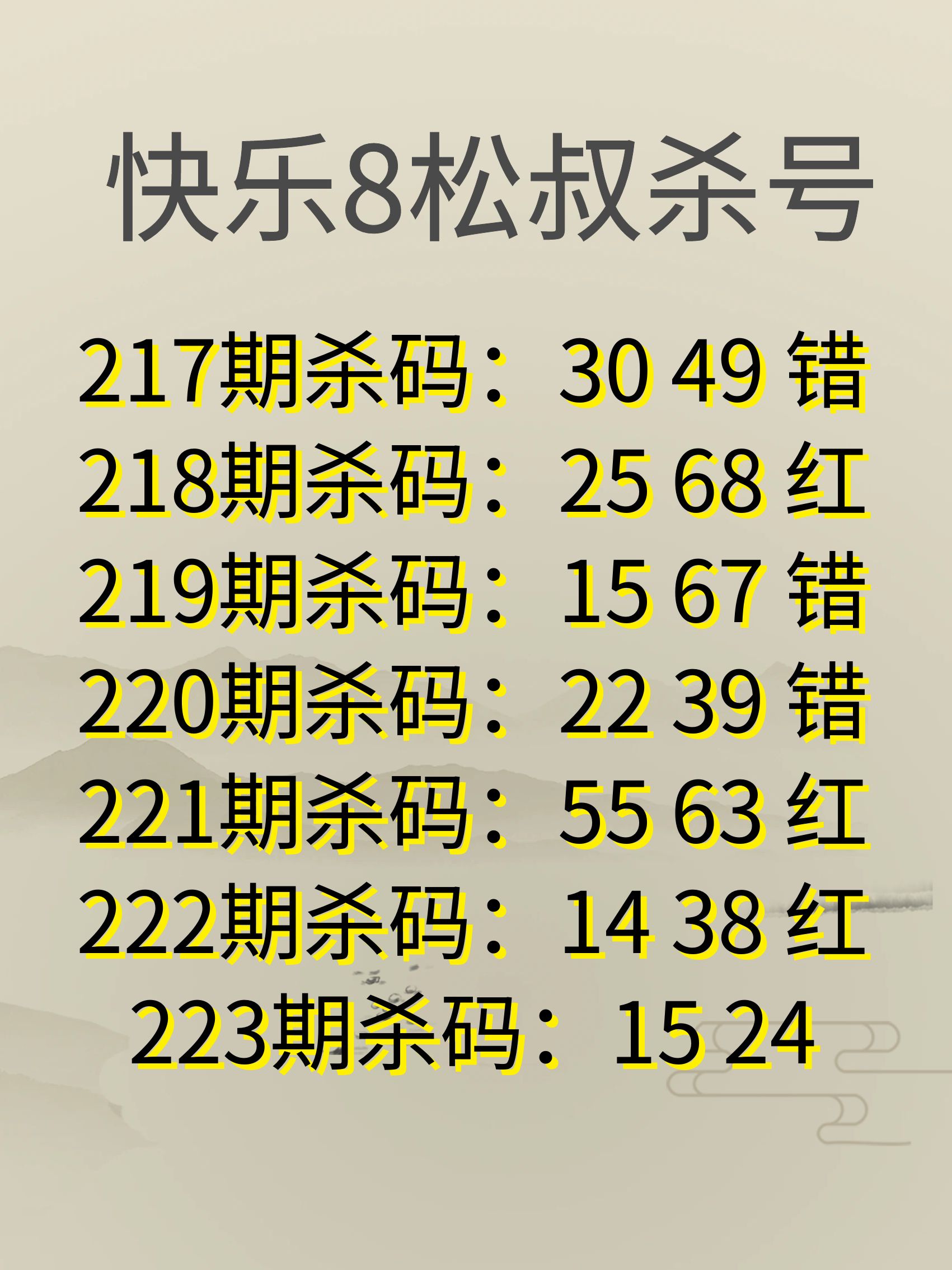 快乐8 25223期松叔杀号图
