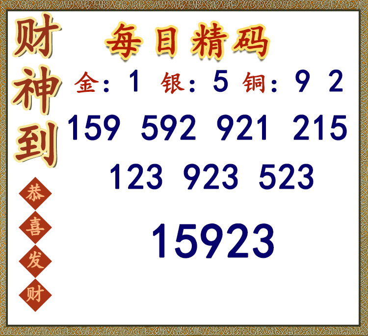 25248期: 福彩3D财神精选胆码杀码