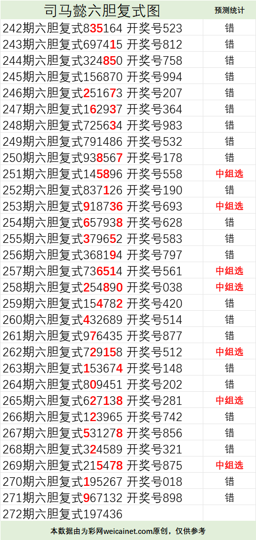 排列三25272期司马懿六胆复式预测图 发表于:2025-10-13 17:45:50 浏览次数:776 上一篇:排列三25272期 张飞定位杀两码 下一篇:排列三25272期胆码 周瑜定位五胆图 排列三杀码荣誉榜