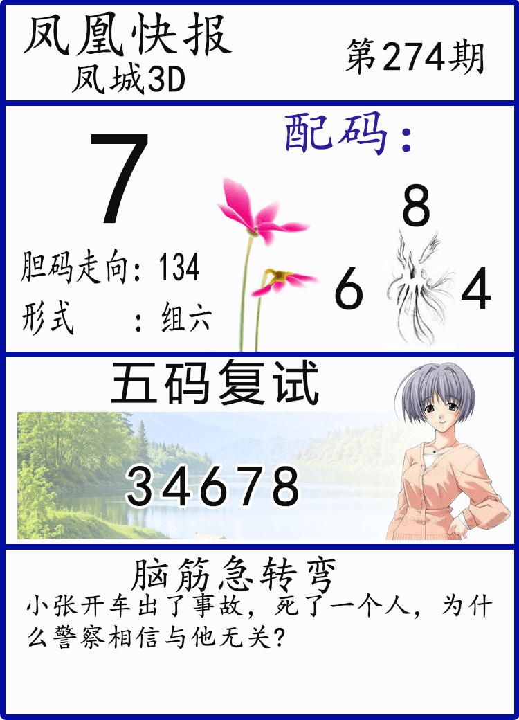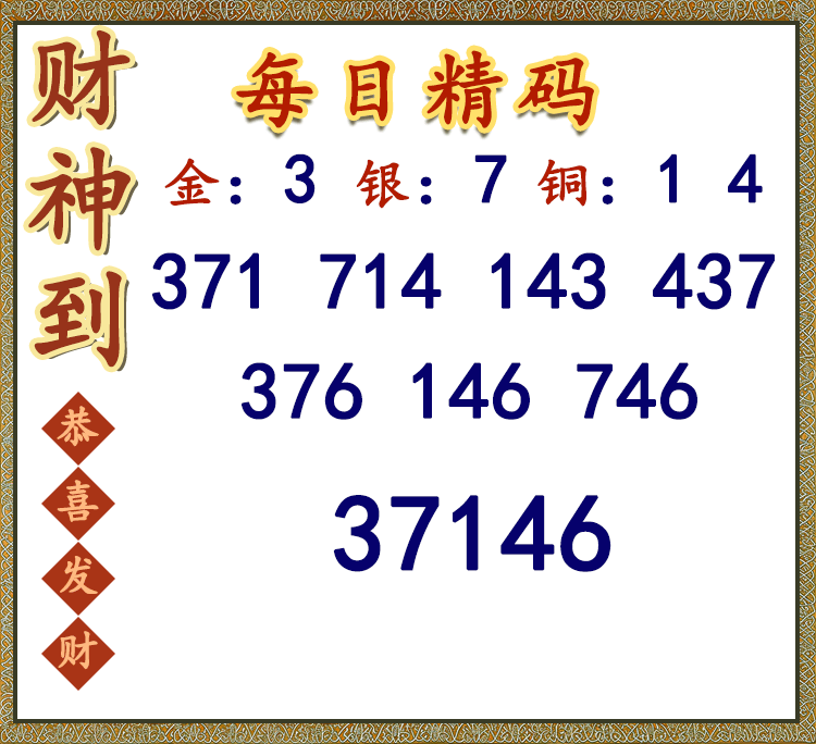 25274期: 福彩3D财神精选胆码杀码