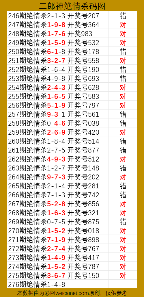排列三25276期二郎神杀号 绝情杀三码 发表于:2025-10-17 16:09:13 浏览次数:776 上一篇:排列三25276期胆码预测分析 专家推荐093 下一篇:排列三25276期关羽期期精杀两码 排列三杀码荣誉榜