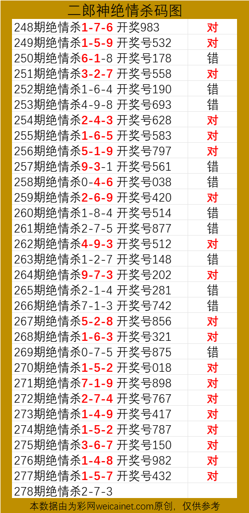 排列三25278期二郎神杀号 绝情杀三码 发表于:2025-10-19 14:35:00 浏览次数:336 上一篇:排列三25278期胆码预测分析 专家推荐361 下一篇:排列三25278期关羽期期精杀两码 排列三杀码荣誉榜
