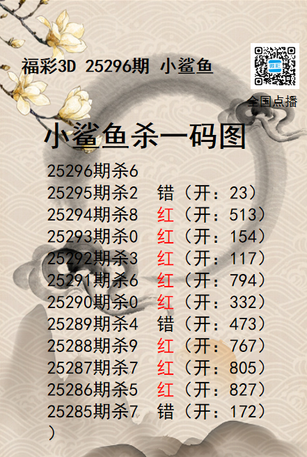 福彩3D25296期分析师小鲨鱼杀号图精选 发表于:2025-11-06 13:27:44 浏览次数:396 上一篇:福彩3D25296期码师小贝杀号图精选 下一篇:福彩3D25296期财神送彩杀三码 福彩3D定位5荣誉榜