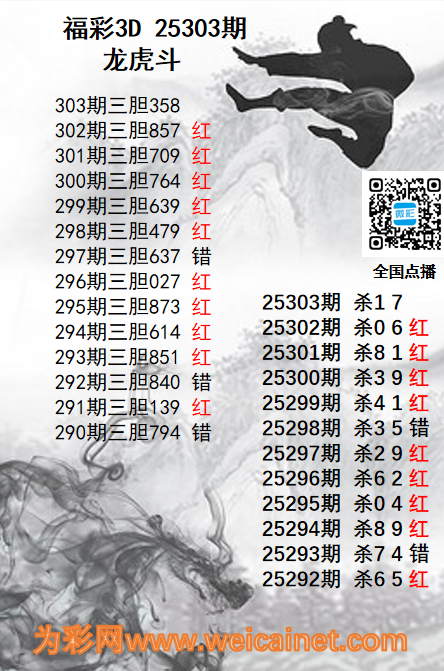 福彩3D25303期龙虎斗胆码 杀码图 发表于:2025-11-13 13:34:01 浏览次数:378 上一篇:福彩3D25303期财神送彩杀三码 下一篇:福彩3D25303期鲸落万物生胆码推荐 福彩3D定位5荣誉榜