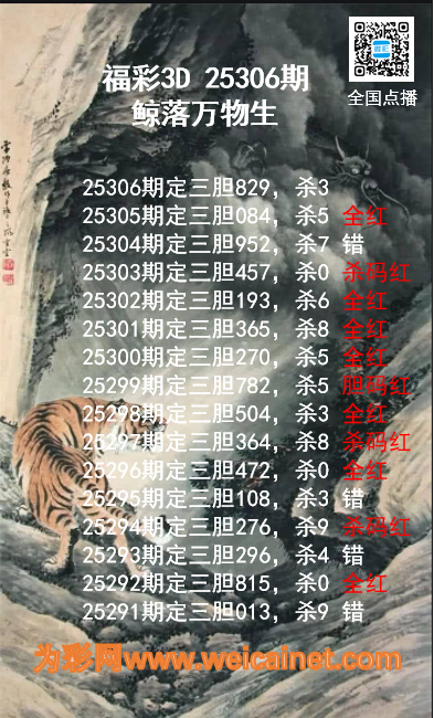 福彩3D25306期鲸落万物生胆码推荐 发表于:2025-11-16 15:50:43 浏览次数:374 上一篇:福彩3D25306期龙虎斗胆码 杀码图 下一篇:排列三25306期胆码预测分析 专家推荐012 福彩3D定位5荣誉榜