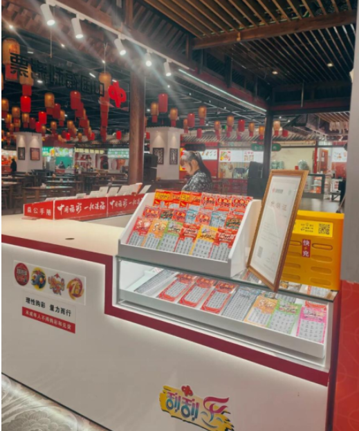 中午时分,大舞台上的快板声清脆响起,杂技演员腾空翻跃的瞬间引爆喝彩。台下,市民们手持特色美食,边品边看,时不时为演员的精彩表现鼓掌喝彩。舞台一侧的福彩销售网点内,一抹特有的“福彩红”格外醒目,业主孔辉正热情地向游客介绍:“咱这福彩站是7月26日街区开业时同步启用的,每天客流量少说也有几百人,节假日更是爆满。”说话间,几位年轻人围在柜台前,指尖轻刮彩票,脸上写满期待。