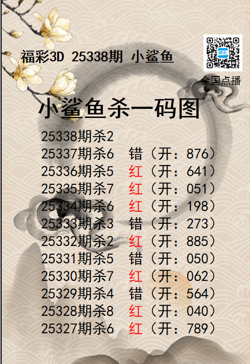 福彩3D25338期分析师小鲨鱼杀号图精 发表于:2025-12-18 08:40:56 浏览次数:510 上一篇:福彩3D25338期码师小贝杀号图精选 下一篇:福彩3D25338期财神送彩杀三码 福彩3D定位5荣誉榜