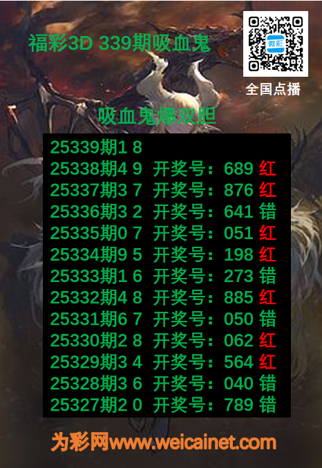 福彩3D25339期胆码 吸血鬼双胆图 发表于:2025-12-19 17:53:51 浏览次数:833 上一篇:福彩3D25339期胆码 蓝色妖姬胆码图 下一篇:福彩3D25339期胆码 蓝电耗子三胆图 福彩3D定位5荣誉榜