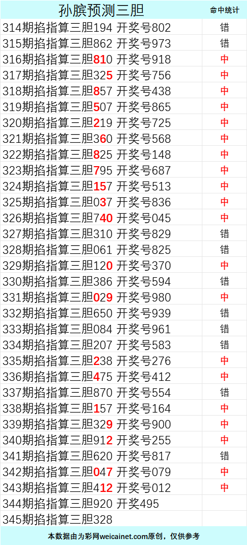排列三25345期胆码 周瑜定位五胆图