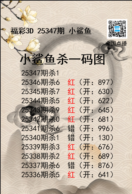 福彩3D25347期分析师小鲨鱼杀号图精 发表于:2025-12-27 17:53:06 浏览次数:886 上一篇:福彩3D25347期码师小贝杀号图精选 下一篇:福彩3D25347期财神送彩杀三码 福彩3D定位5荣誉榜