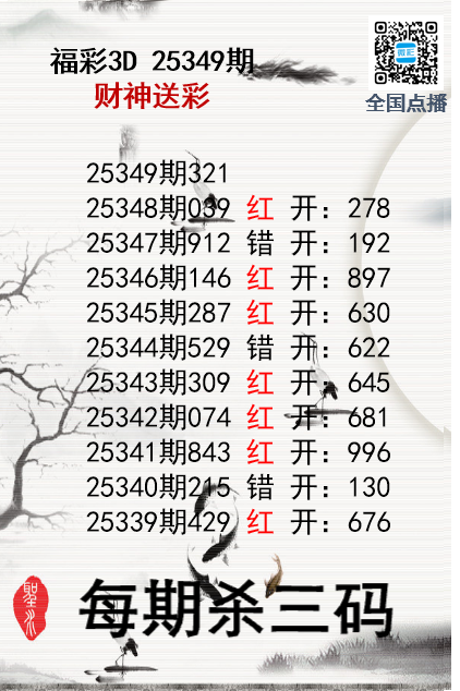 福彩3D25349期财神送彩杀三码 发表于:2025-12-29 19:08:55 浏览次数:805 上一篇:福彩3D25349期分析师小鲨鱼杀号图精 下一篇:福彩3D25349期龙虎斗胆码 杀码图 福彩3D定位5荣誉榜