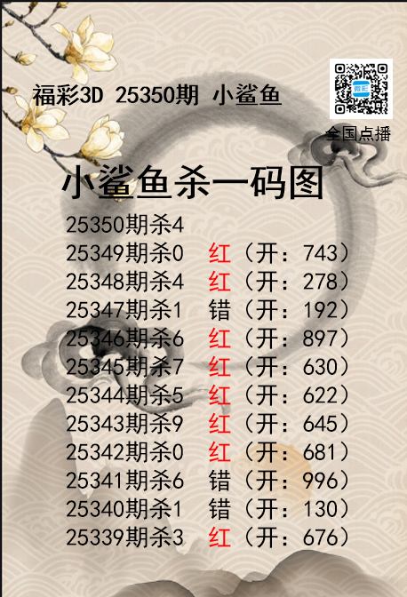 福彩3D25350期分析师小鲨鱼杀号图精 发表于:2025-12-30 16:49:28 浏览次数:843 上一篇:福彩3D25350期码师小贝杀号图精选 下一篇:福彩3D25350期财神送彩杀三码 福彩3D定位5荣誉榜