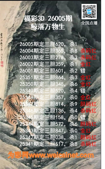 福彩3D26005期鲸落万物生胆码推荐 发表于:2026-01-05 18:26:43 浏览次数:1123 上一篇:福彩3D26005期龙虎斗胆码 杀码图 下一篇:26005期:兔小白福彩3D试机号后分析 福彩3D定位5荣誉榜