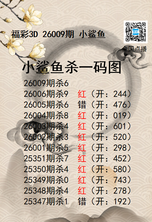 福彩3D26009期分析师小鲨鱼杀号图精 发表于:2026-01-09 16:34:49 浏览次数:919 上一篇:福彩3D26009期码师小贝杀号图精选 下一篇:福彩3D26009期财神送彩杀三码 福彩3D定位5荣誉榜