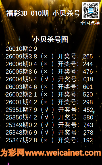 福彩3D26010期码师小贝杀号图精选 发表于:2026-01-10 11:42:30 浏览次数:456 上一篇:福彩3D26010期胆码 蓝色妖姬胆码图 下一篇:福彩3D26010期分析师小鲨鱼杀号图精 福彩3D定位5荣誉榜