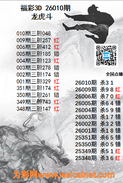 福彩3D26010期龙虎斗胆码 杀码图 发表于:2026-01-10 11:43:36 浏览次数:415 上一篇:福彩3D26010期财神送彩杀三码 下一篇:福彩3D26010期鲸落万物生胆码推荐 福彩3D定位5荣誉榜
