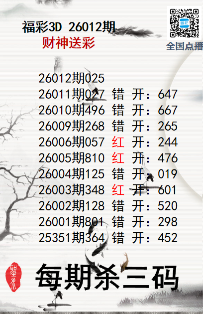 福彩3D26012期码师小贝杀号图精选 发表于:2026-01-12 16:19:52 浏览次数:1157 上一篇:福彩3D26012期分析师小鲨鱼杀号图精 下一篇:福彩3D26012期鲸落万物生胆码推荐 福彩3D定位5荣誉榜