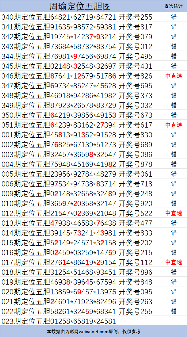 排列三26023期胆码 周瑜定位五胆图 发表于:2026-01-23 16:24:10 浏览次数:795 上一篇:排列三26023期司马懿六胆复式预测图 下一篇:排列三26023期孙膑预测三胆 排列三杀码荣誉榜