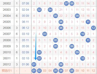 上图是体彩大乐透后区开奖号码分布图,我在上面图中标注出来的数字是我觉得后区第一个数字该出的范围,上面走势图中标注出来的蓝色箭头表示的就是遗漏周期,上期开出数字01的遗漏周期是11期,那么本期后区第一个数字出遗漏周期小的数字的概率大,这些数字是01 02 05 06 08;