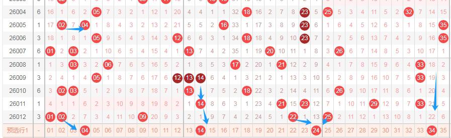 大乐透26013期 ,前区4尾数做胆码,后区看大跨度