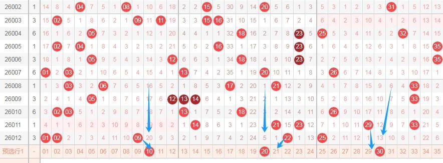 大家好,本人蔡楚门,一个玩彩十几年的老彩民,现在来本平台分享一下本人的对彩票的分析思路和看法,希望本人的文章能够给你们带来灵感和好的运气,首先感谢为彩网提供一个好的平台,下面走势图都是用为彩网平台的走势图,接下来分析一下体彩大乐透第2026013期的前区号码思路和后区号码思路。