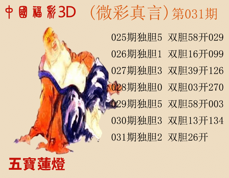 26031期: 福彩3D丹东微彩图预测 发表于:2026-01-31 15:14:49 浏览次数:330 上一篇:福彩3D26031 期一句定三码字谜汇总 下一篇:26031期: 福彩3D丹东山东真诀捉码图 福彩3D定位5荣誉榜