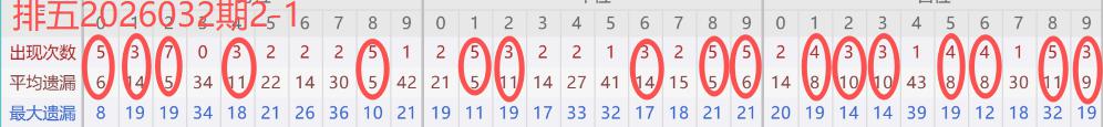 下图所圈出的为近30期各位置所出现的热码出现次数及平均遗漏值,用以参考和一些冷码组合选号。