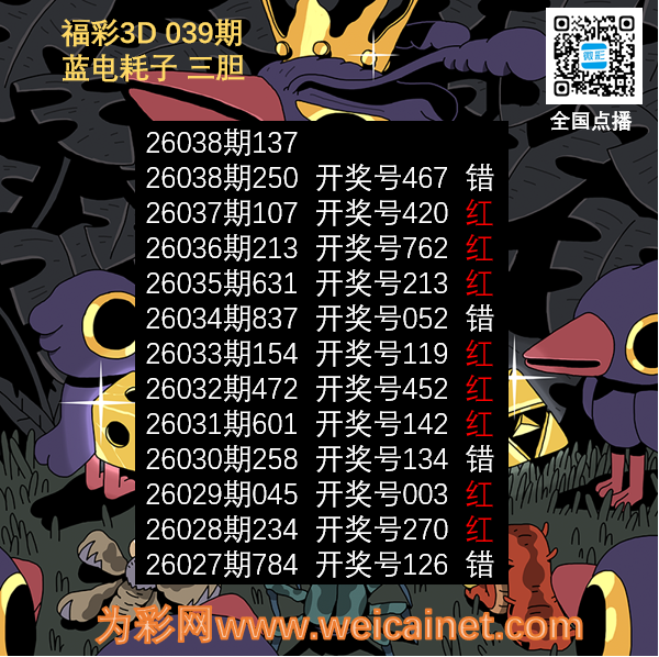 福彩3D26039胆码 蓝电耗子三胆图 发表于:2026-02-08 16:48:58 浏览次数:777 上一篇:福彩3D26039期胆码 吸血鬼双胆图 下一篇:福彩3D26039期码师小贝杀号图精选 福彩3D定位5荣誉榜