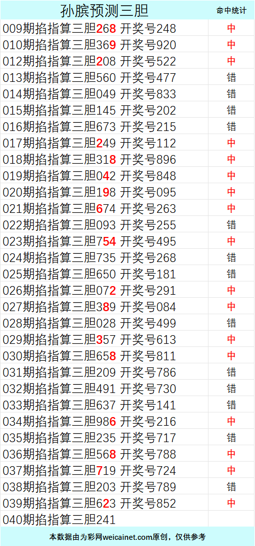 排列三26040期孙膑预测三胆