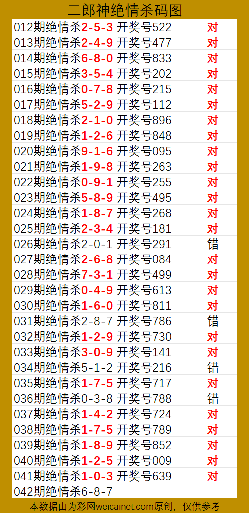 排列三26042期二郎神杀号 绝情杀三码 发表于:2026-02-11 17:17:27 浏览次数:945 上一篇:排列三26042期胆码预测分析 专家推荐497 下一篇:排列三26042期关羽期期精杀两码 福彩3D定位5荣誉榜