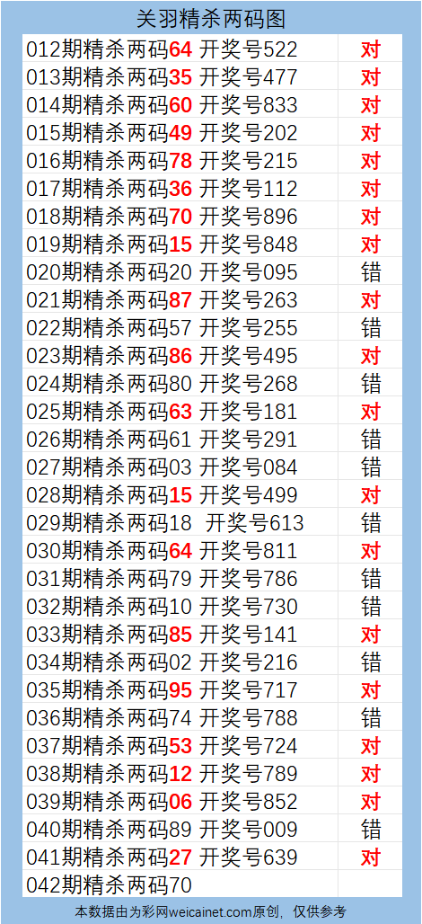 排列三26042期关羽期期精杀两码 发表于:2026-02-11 17:17:40 浏览次数:768 上一篇:排列三26042期二郎神杀号 绝情杀三码 下一篇:排列三26042期 张飞定位杀两码 福彩3D定位5荣誉榜