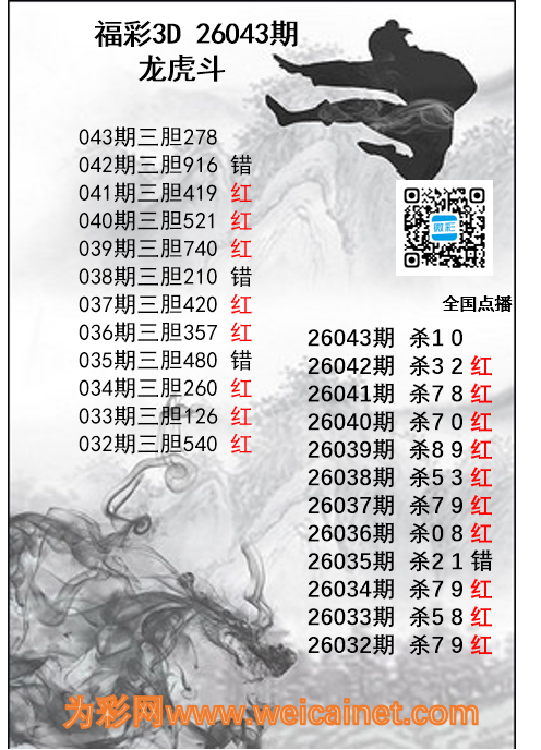 福彩3D26043期龙虎斗胆码 杀码图 发表于:2026-02-12 17:59:13 浏览次数:1043 上一篇:福彩3D26043期财神送彩杀三码 下一篇:福彩3D26043期鲸落万物生胆码推荐 排列三杀码荣誉榜