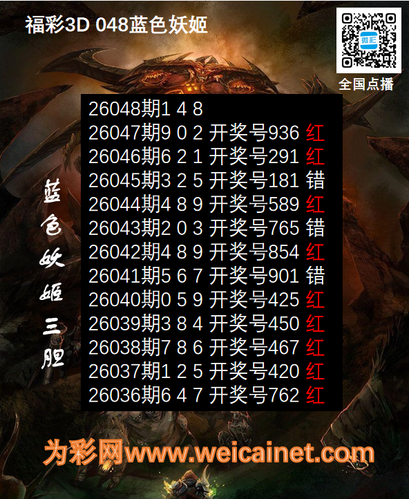 福彩3D26048期胆码 蓝色妖姬胆码图 发表于:2026-02-27 13:18:49 浏览次数:515 上一篇:排列三26048期孙膑预测三胆 下一篇:福彩3D26048期胆码 吸血鬼双胆图 福彩3D定位5荣誉榜