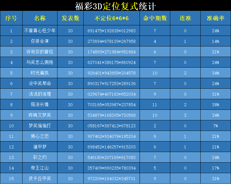 福彩3D 26071期复式定位统计 发表于:2026-03-22 12:49:39 浏览次数:154 上一篇:福彩3D 26071期定百统计图 下一篇:排列三26071期胆码预测分析 专家推荐658 福彩3D定位5荣誉榜